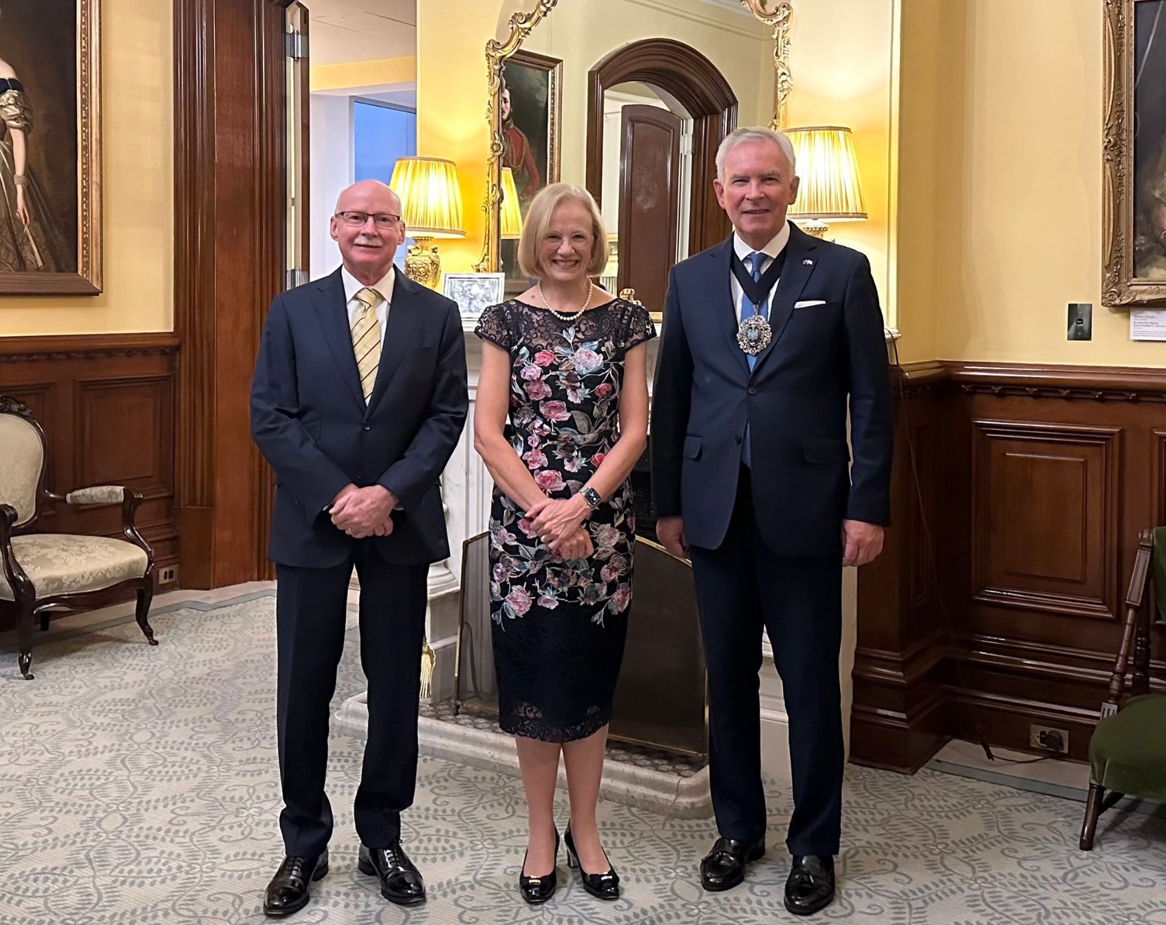 Her Excellency and Professor Nimmo had the great honour of welcoming the 694th Lord Mayor of the City of London, The Right Honourable Alderman Nicholas Lyons and representatives of the City of London Corporation to the Fernberg Estate.